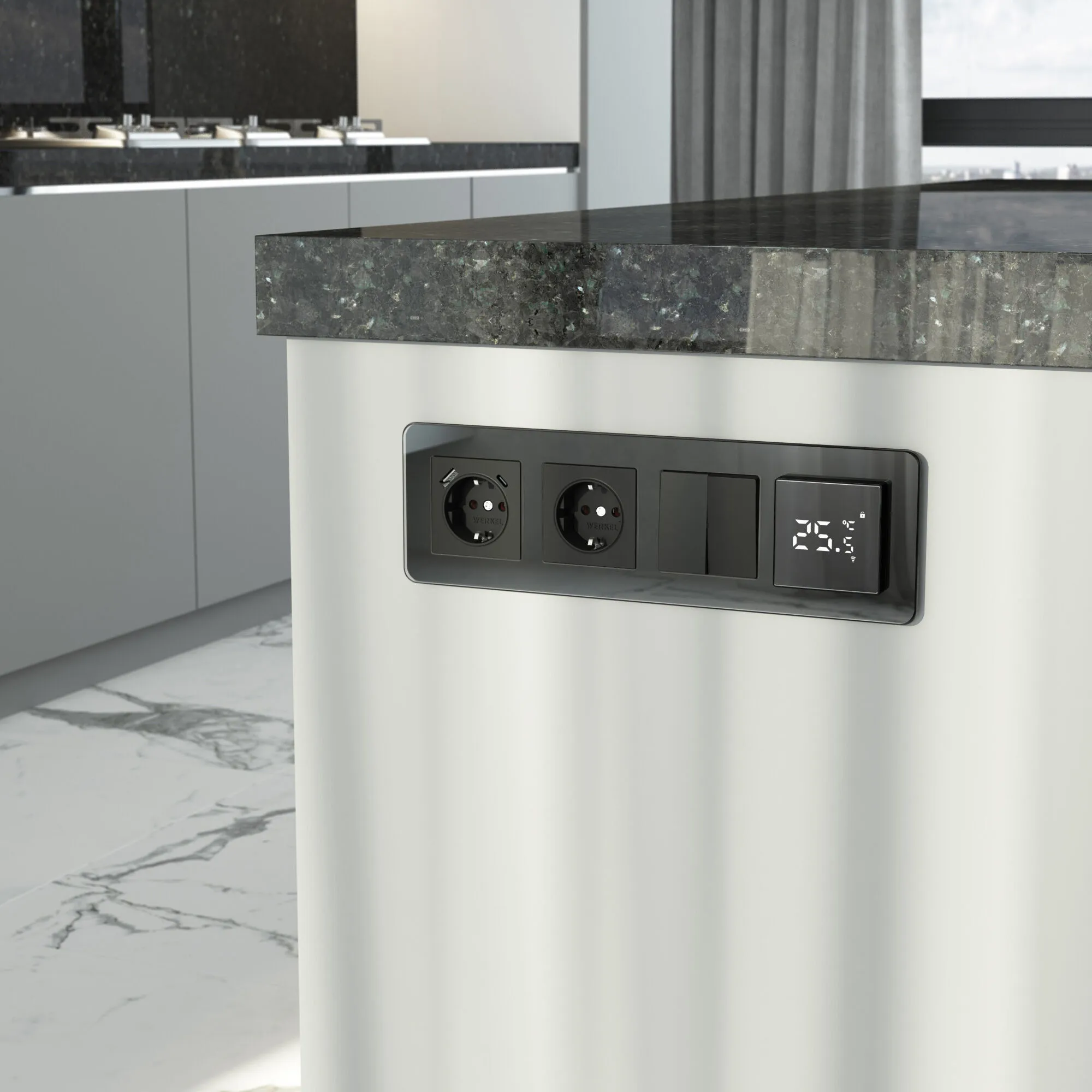 • Универсальная совместимость — идеально подходит ко всем стандартным механизмам Werkel с посадочным размером 58 × 58 мм, что позволяет создать единый стиль электроустановочных изделий.