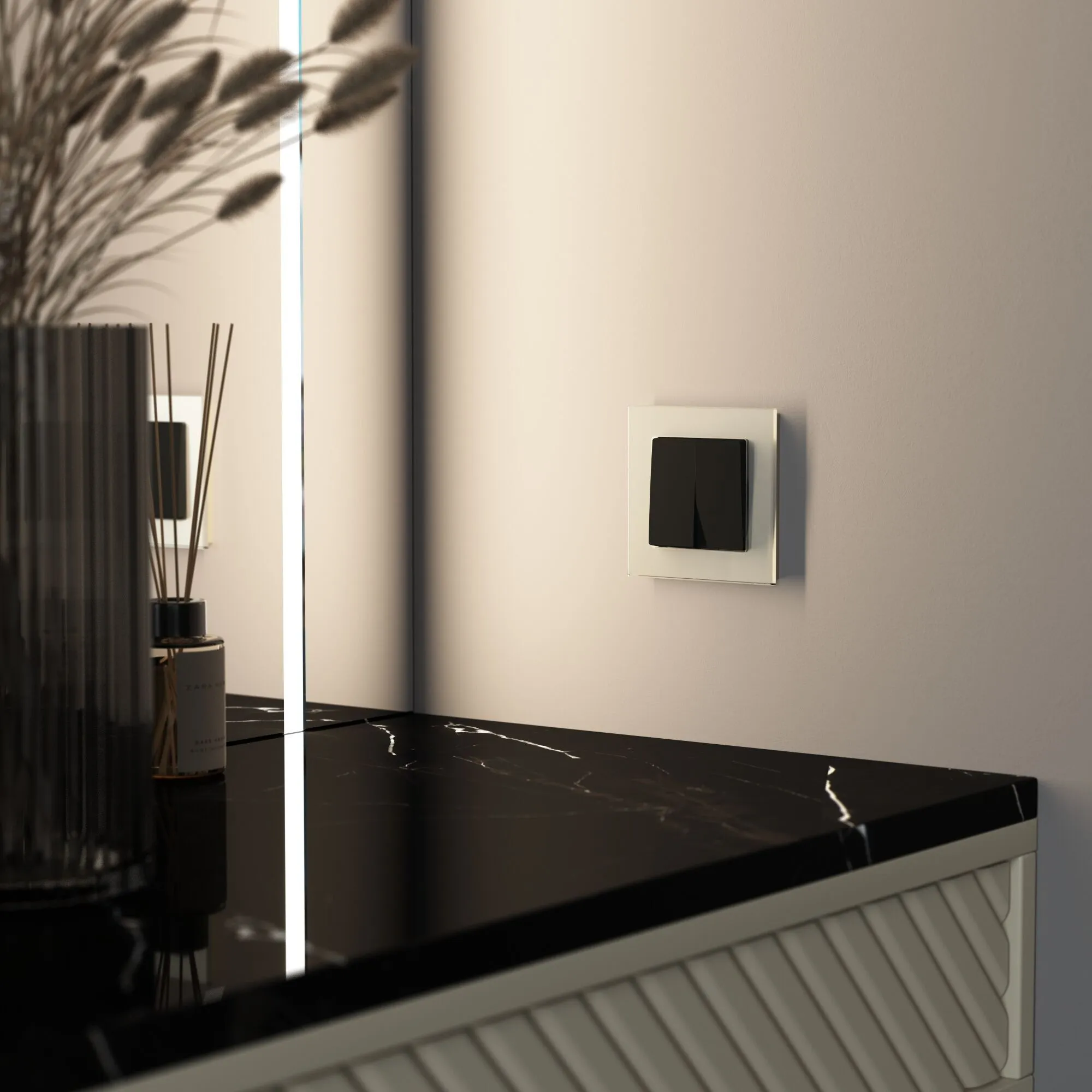 • Стильный дизайн — цвет шампань и продуманная геометрия рамки идеально вписываются в современные интерьеры: минимализм, скандинавский стиль, хай-тек и другие.