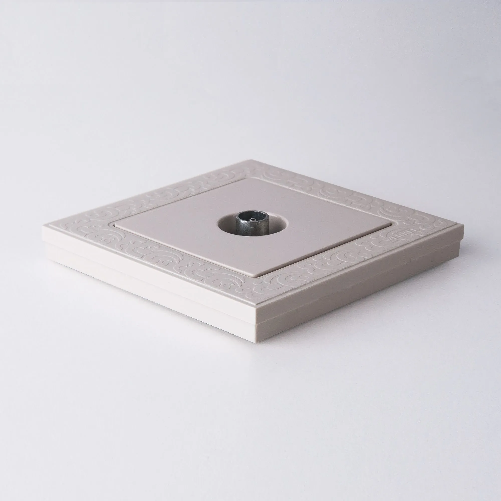 • Металлический корпус и суппорт обеспечивают прочную фиксацию в стандартной монтажной коробке
