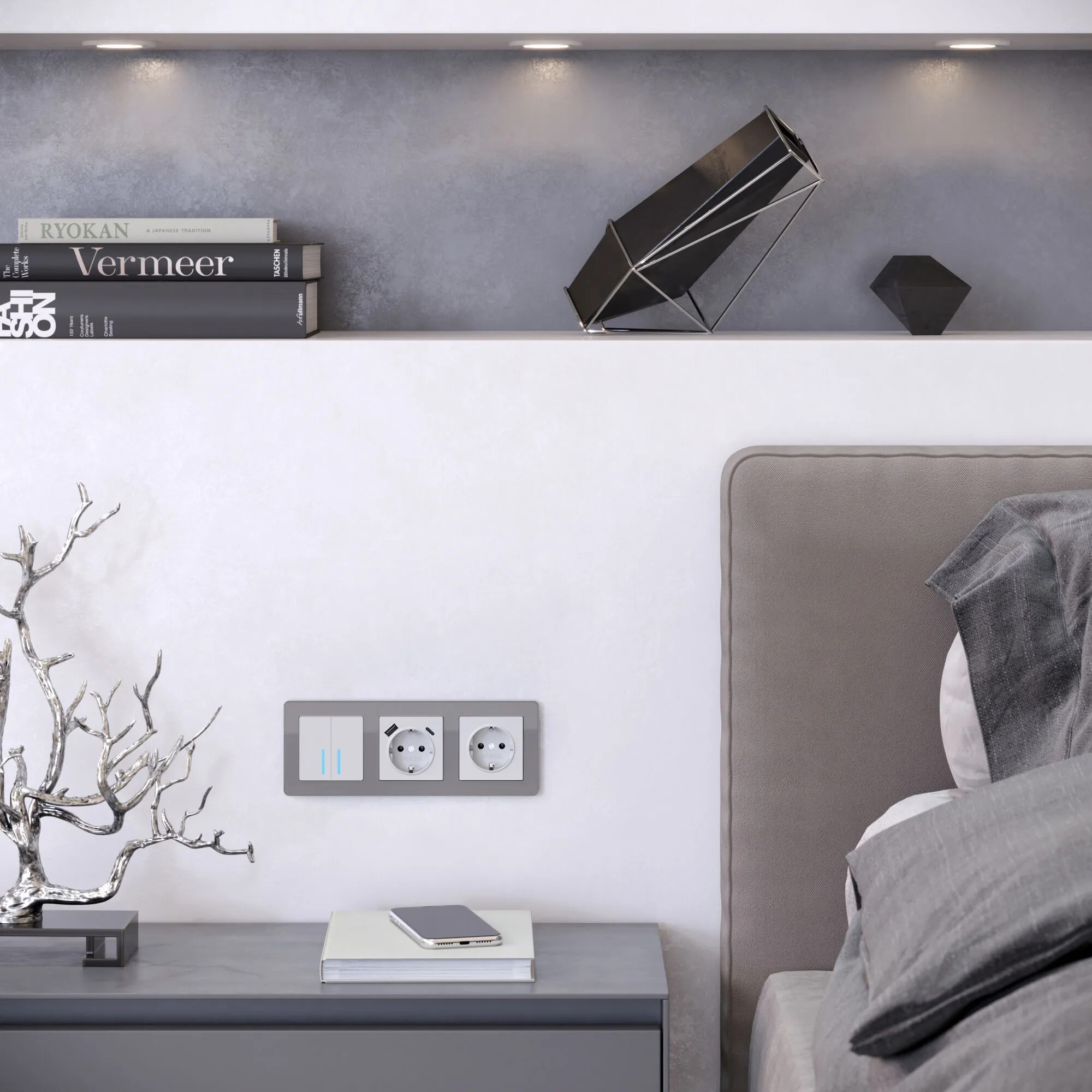 • Функционал: выбирайте матовые USB-розетки и компактные рамки — они не нарушают уют.